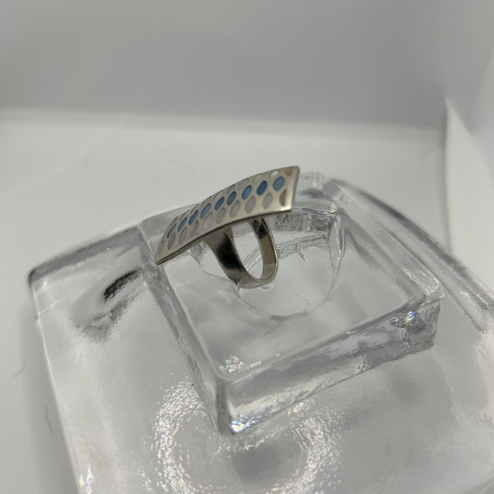 Cape Cod Sea Glass Sterling Silver 925 Rectangle Statement Ring 6 Blue Huge Ebay